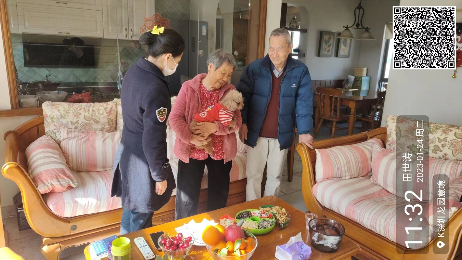 在深圳龙园意境,万科物业管家定期上门拜访独居老人,为其检查水电气等使用情况,得到老人及家人的赞赏。